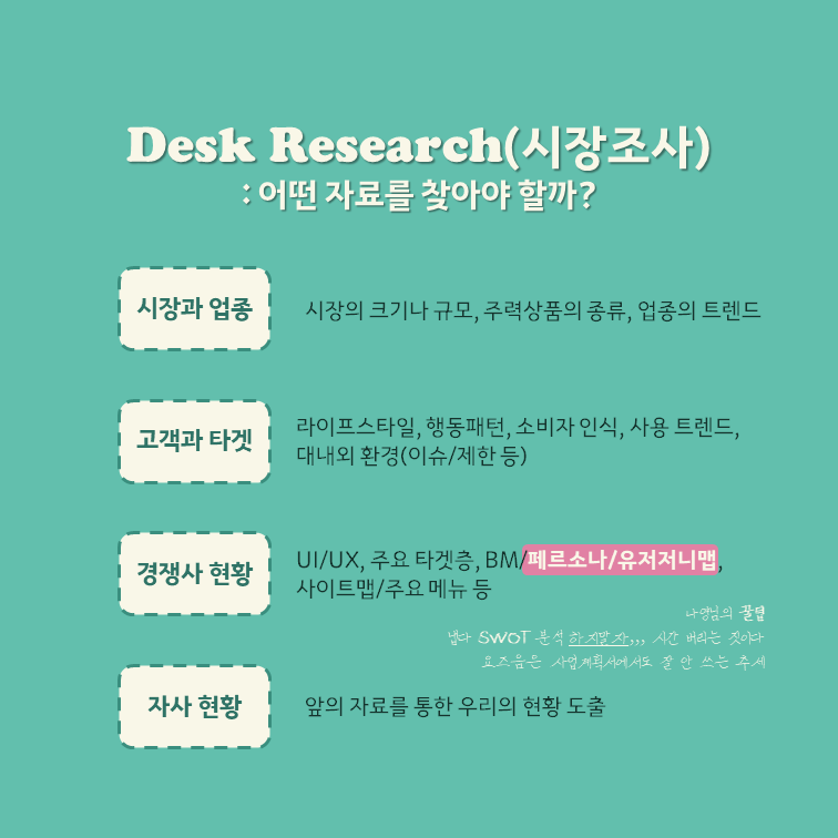 - 필드 리서치 이전에 들어가는 서비스 기확과 사업 조사의 기본 활동.